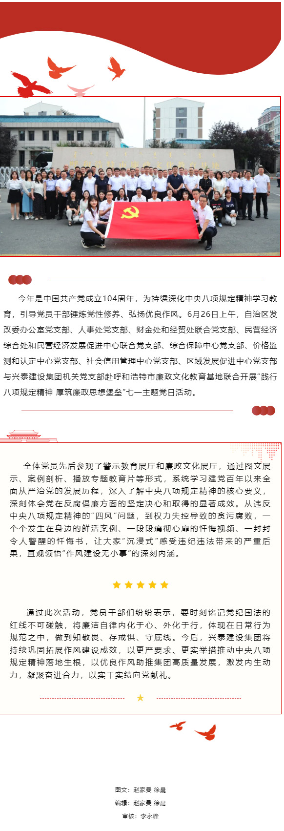 踐行八項(xiàng)規(guī)定精神 厚筑廉政思想堡壘 | 興泰建設(shè)集團(tuán)機(jī)關(guān)黨支部與自治區(qū)發(fā)改委部分黨支部聯(lián)合開(kāi)展“七一”主題黨日活動(dòng)